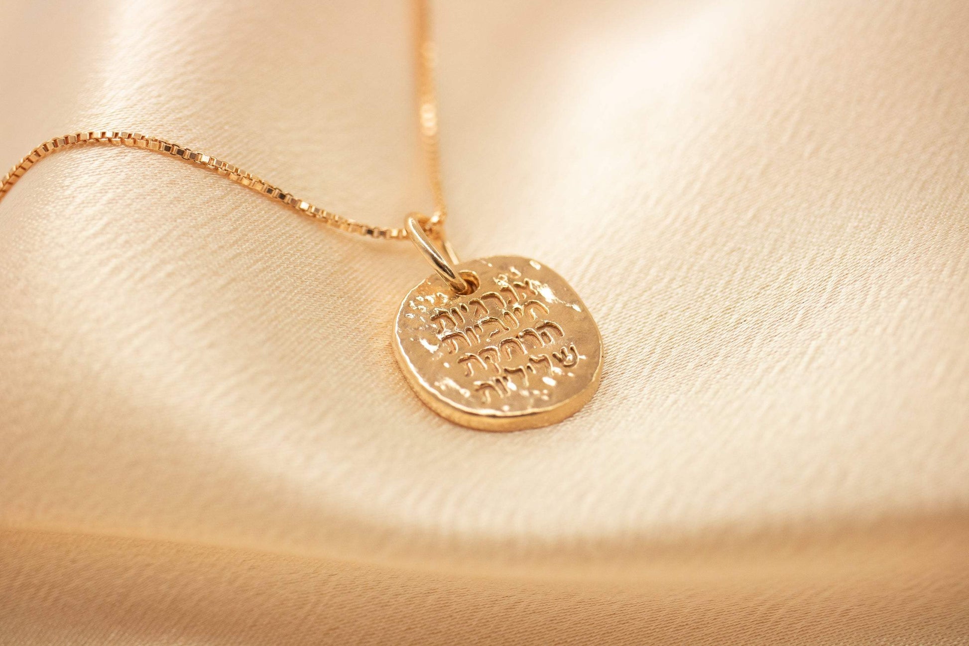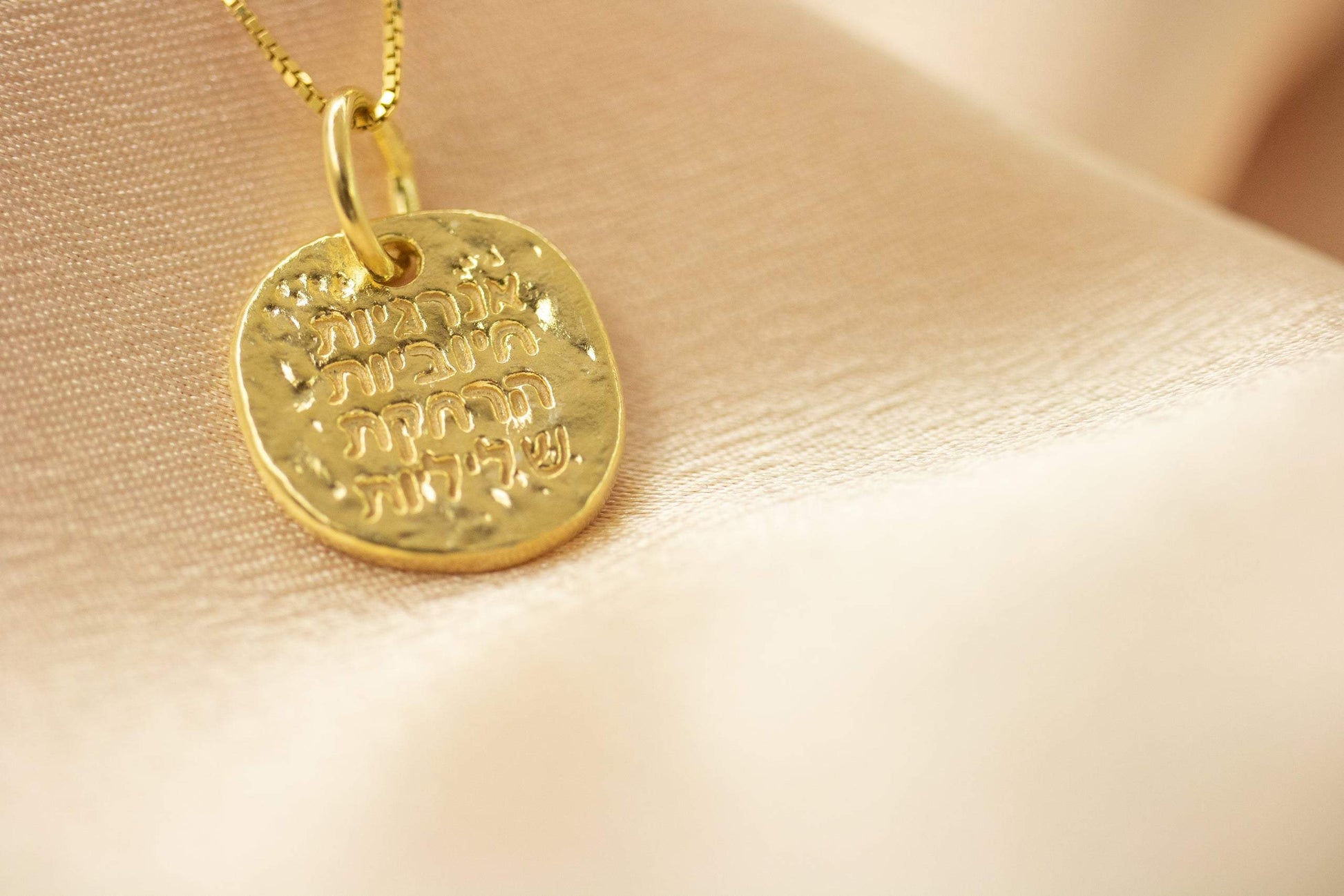 The front of this amulet features the Hebrew letters ‘כהת,’ three letters of the 72 sacred Kabbalah words that ward off evil and garner good fortune. The back is translated into: “ENERGY, POSITIVITY, PROTECTION FROM NEGATIVITY.”