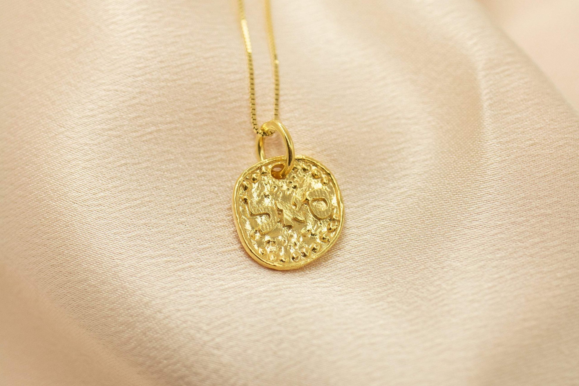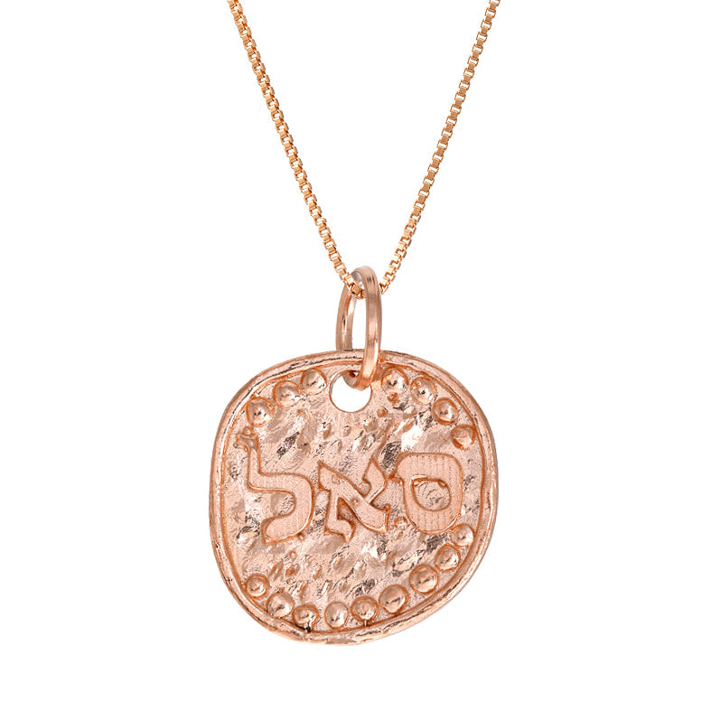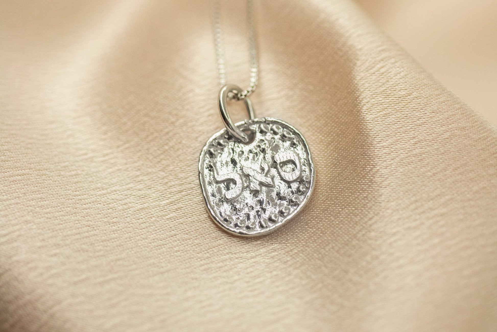 The front of this amulet features the Hebrew letters ‘סאל,’ three letters of the 72 sacred Kabbalah words connect the wearer to abundance and economic prosperity.